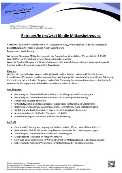 Hier finden Sie immer aktuelle Stellenangebote für unsere Mittagsbetreuung.